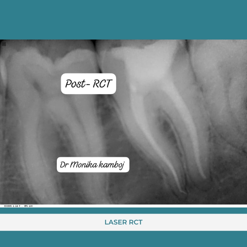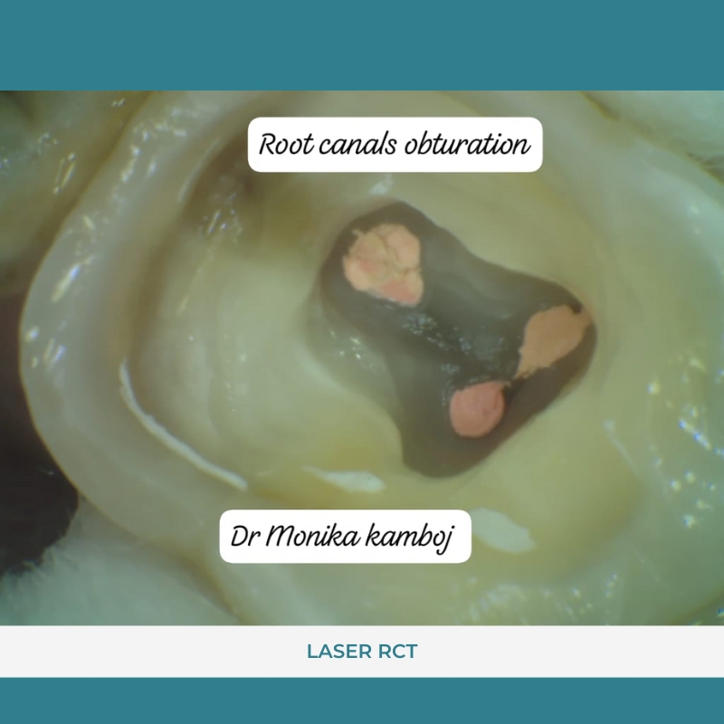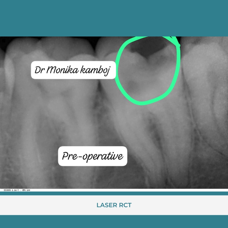 the patient having severe pain and sensitivity in this tooth was treated with single sitting LASER RCT.