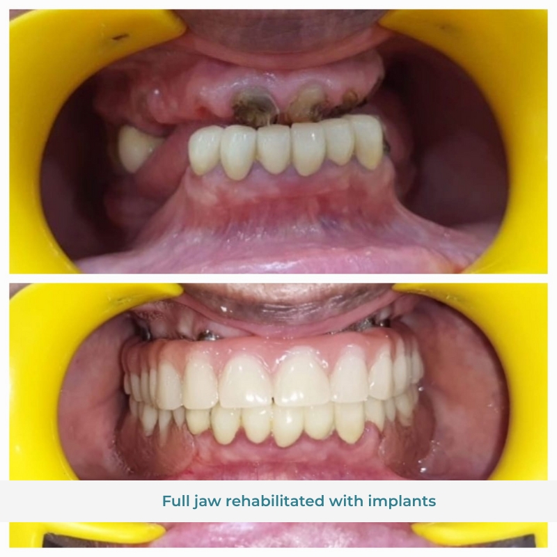 The rehabilitation successfully restored her smile, improved chewing efficiency, and allowed her to enjoy food comfortably once again. The final outcome provided a natural-looking, confident smile along with long-term functional stability.