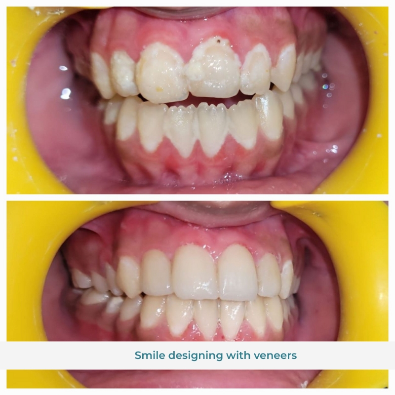 Young female patient was conscious about her smile because of gaps between teeth. So, 4 veneers were planned for her and in 2 sittings within a week, she received a beautiful smile makeover.