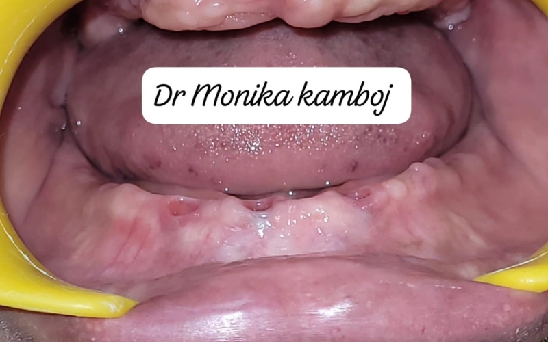 The mobile hopeless lower front teeth in this patient were extracted and replaced with a temporary fixed bridge on the same day to allow the wound to heal for 3 months. Finally, a zirconia bridge was fabricated using the strong canines on both sides as support, providing an esthetic and durable fixed solution for missing teeth.